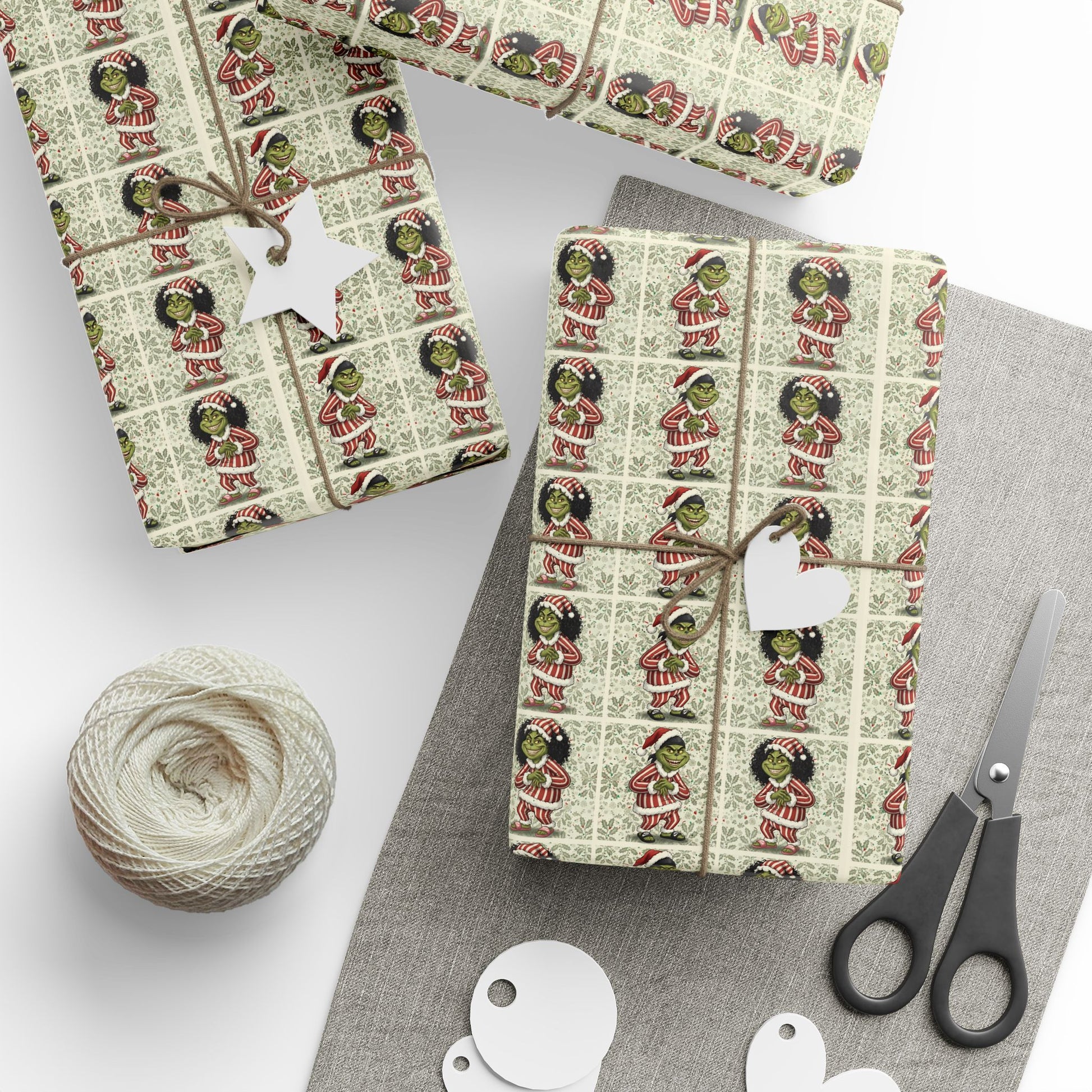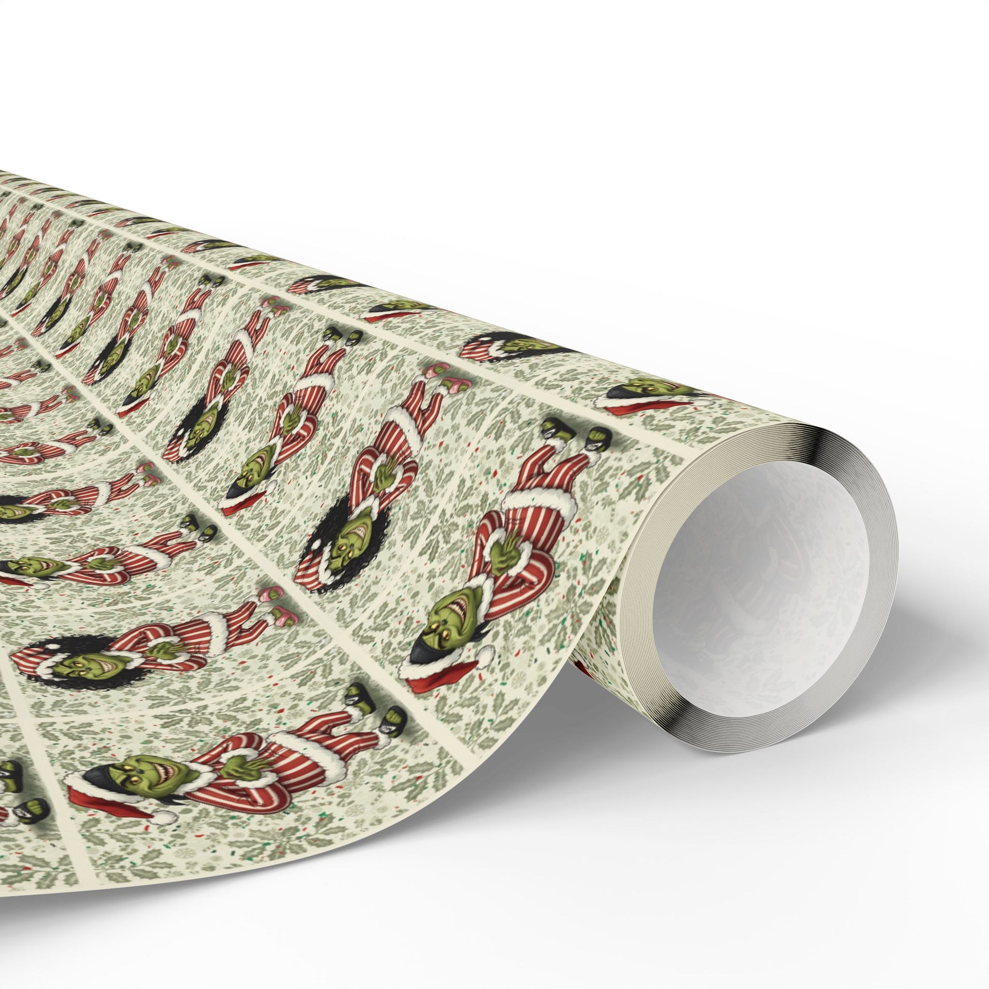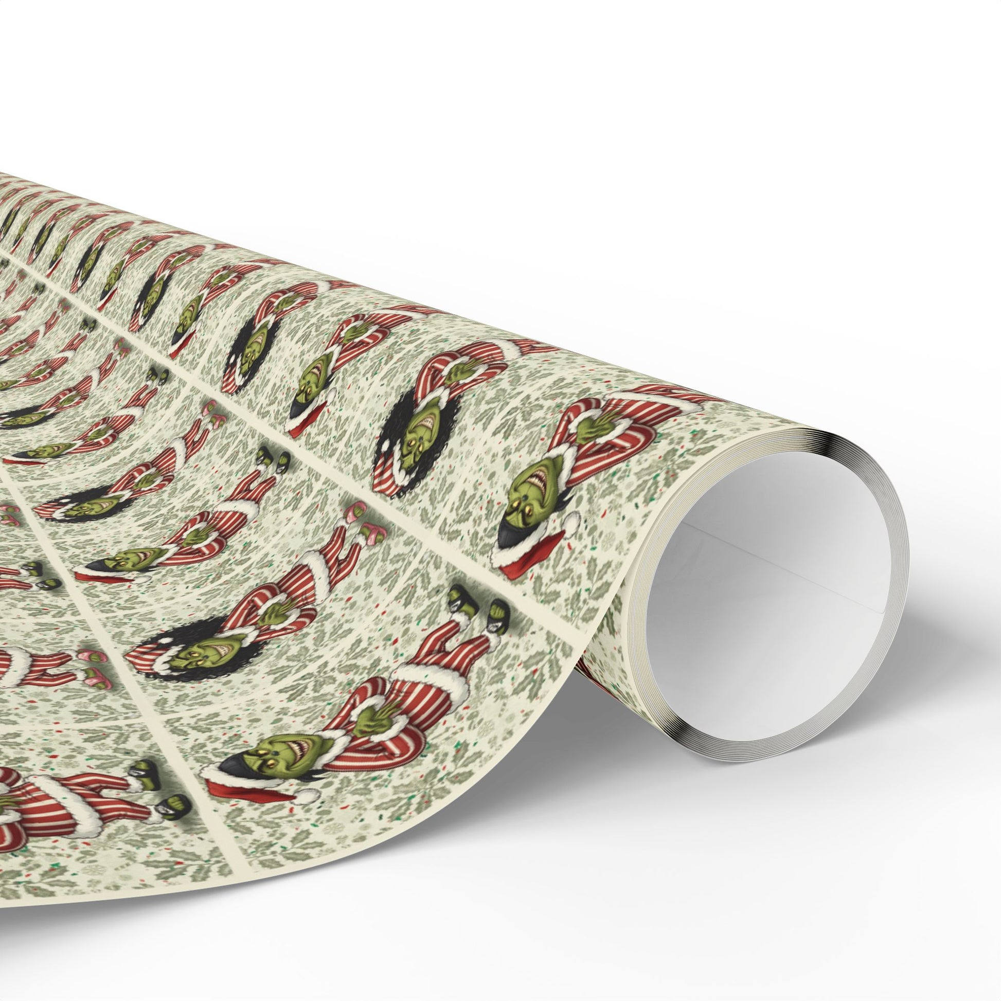 Forget boring holiday paper—our Mr. & Mrs. Grinch Candy Cane Wrapping Paper brings bold style and a mischievous smile to your Christmas gifts. This exclusive design features a repeating pattern of cartoon-style Grinch and Lady Grinch characters, perfectly blending holiday nostalgia with modern street style.